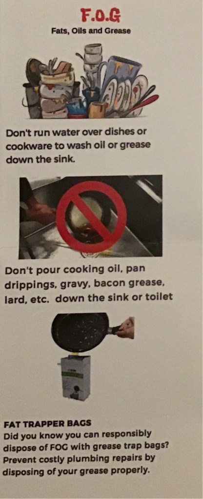At our meeting on 1/15/20, Wastewater Collection Superintendent Angel Deleon educated us on the problems with “flushable” wipes and how it costs taxpayers a lot of money for them to clear out the clogged lines. He said it costs approximately $250/hr and some jobs can take about a month of work to clear. He also discussed the various items they find in the storm drains including bikes and construction materials. Additionally, he explained how the grease that gets discarded clogs our sewer pipes and offered a solution for those looking to discard their grease.